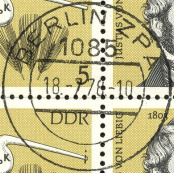 | Nummer: | | SE | | Typ: | Ersttagssonderstempel (ESST) | | Ort/PA: | BERLIN 1085 | | Inschrift: | BEDEUTENDE PERSÖNLICHKEITEN | | Abbildung: | Lorbeerzweig? | | Datum: | 18.-7.78-10 | | Größe: | 39,8mm |