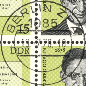 | | Ersttag: | 18.7.1978 | | Abbildung: | Alfred Böblin (1878-1957) | | Zähnung: | K13:12½ | | Druck: | Odr. | | Farbe: | mittelgelboliv/braunschwarz | | Auflage: | 4.500.000 |