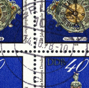 | | Ersttag: | 24.10.1978 | | Abbildung: | Augsburger Stutzuhr (1710) | | Zähnung: | K14 | | Druck: | RaTdr. | | Farbe: | mehrfarbig | | Auflage: | 4.500.000 |