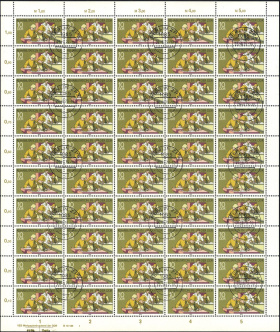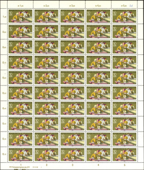 | | Ersttag: | 26.6.1979 | | Abbildung: | Arbeitstätigkeit im Betrieb | | Zähnung: | K13:12½ | | Druck: | Odr. | | Farbe: | mehrfarbig | | Auflage: | 2.000.000 |