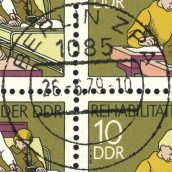 | Nummer: | | SE-11 | | Typ: | Ersttagssonderstempel (ESST) | | Ort/PA: | BERLIN 1085 | | Inschrift: | REHABILITATION IN DER DDR | | Abbildung: | Symbol mit Rollstuhlfahrer | | Datum: | 26.-6.79-11 | | Größe: | 39,8mm |