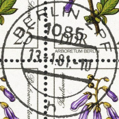 | Nummer: | | SE-11 | | Typ: | Ersttagssonderstempel (ESST) | | Ort/PA: | BERLIN 1085 | | Inschrift: | SELTENE GEHÖLZE | | Abbildung: | Blume | | Datum: | 13.-1.81-11 | | Größe: | 40,0mm x 35,6mm |