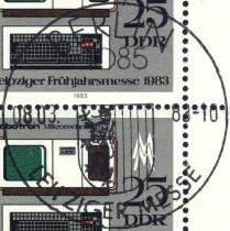 | | Ersttag: | 8.3.1983 | | Abbildung: | Robotron-Mikrorechner | | Zähnung: | K14 | | Druck: | RaTdr. | | Farbe: | mehrfarbig | | Auflage: | 4.400.000 |