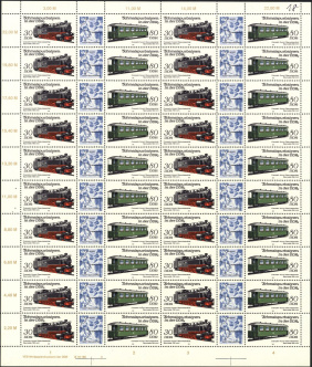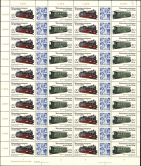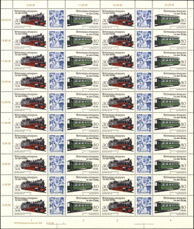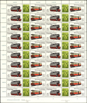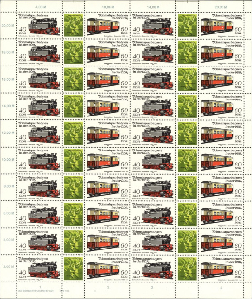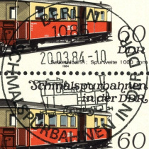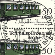 | | Ersttag: | 20.3.1984 | | Abbildung: | Selketalbahn; Spurweite 1000mm (Lokomotive) | | Zähnung: | K13:12½ | | Druck: | Odr. | | Farbe: | mehrfarbig | | Auflage: | 3.500.000 |