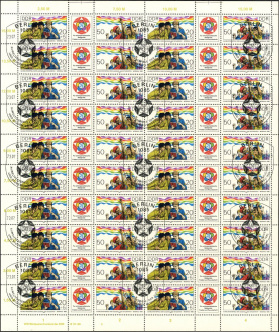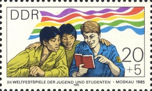 | | Ersttag: | 23.7.1985 | | Abbildung: | Demonstrierende Jugendliche verschiedener Nationalitäten | | Zähnung: | K13:12,5 | | Druck: | Odr. | | Farbe: | mehrfarbig | | Wz: | ohne | | Auflage: | 3.500.000 |