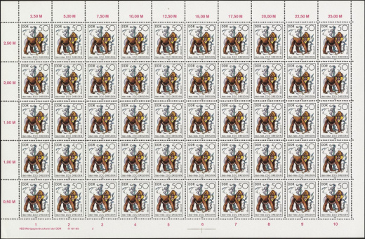 | | Ersttag: | 27.5.1986 | | Abbildung: | Mandrill | | Zähnung: | K14 | | Druck: | Odr. | | Farbe: | mehrfarbig | | Auflage: | 4.000.000 |