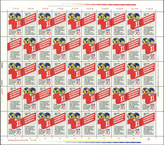 | | Ersttag: | 9.9.1986 | | Abbildung: | Weltkugel, Flaggenband | | Zähnung: | K14 | | Druck: | RaTdr. | | Farbe: | mehrfarbig | | Wz: | ohne | | Auflage: | 3.600.000 |