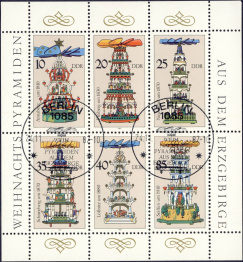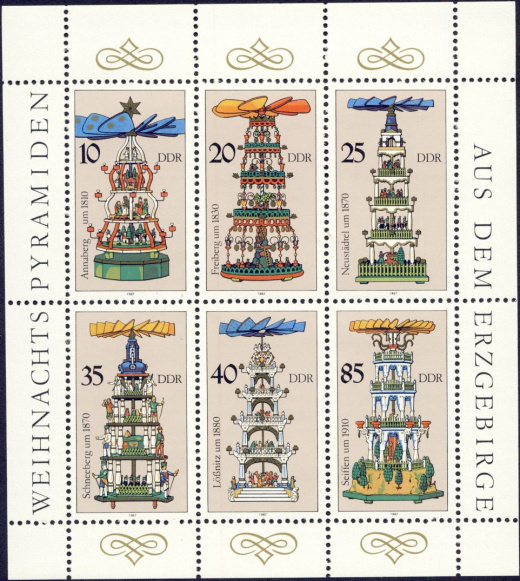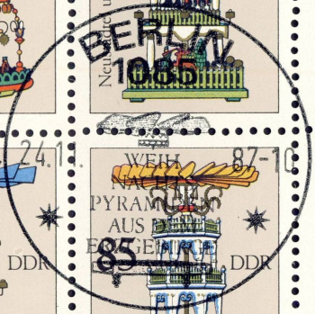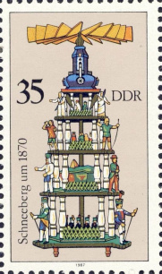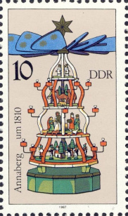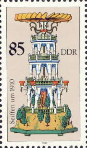 | Ersttag: | 24.11.1987 | Abbildung: | Seiffen (1910) | Zähnung: | K12,5:13 | Druck: | Odr. | Farbe: | mehrfarbig | Wz: | ohne | Auflage: | 2.100.000 |
