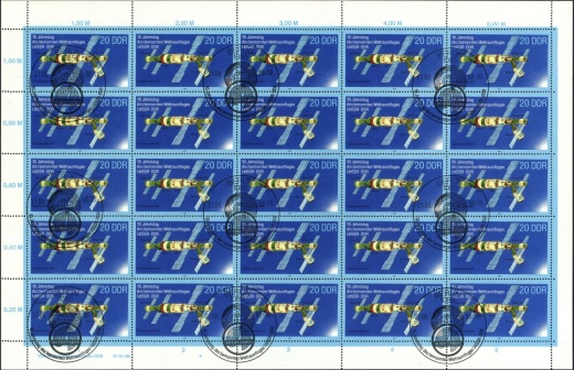 | | Ersttag: | 21.6.1988 | | Abbildung: | Orbitalkomplex MIR | | Zähnung: | K14 | | Druck: | Odr. | | Farbe: | mehrfarbig | | Wz: | ohne | | Auflage: | 8.000.000 |