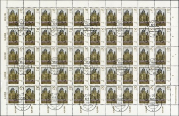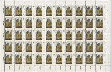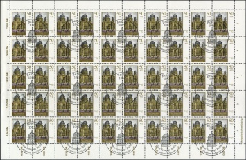 (Zuschlag) | | Ersttag: | 18.9.1990 | | Abbildung: | Neue Synagoge Berlin (Centrum Judaicum) | | Zähnung: | K14 | | Druck: | Odr. | | Farbe: | mehrfarbig | | Auflage: | 4.000.000 |