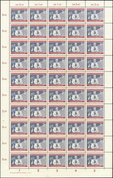 | | Ersttag: | 10.11.1960 | | Abbildung: | Laborantin, Kleid aus Kunstfasergewebe | | Zähnung: | K13:13,5 | | Druck: | Odr. | | Farbe: | rötlichgelb/ mittelviolettultramarin | | Wz: | 3X (DDR Kreuzblüten)