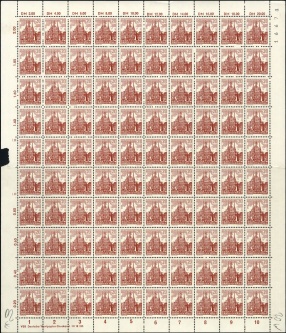 - Bogenform 1: Steuerstriche neben Feld 41/51. Kein Farbbalken neben Feld 1. Bogenzählnummer nach innen.