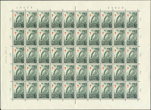 (Zuschlag) | | Ersttag: | 25.9.1956 | | Abbildung: | Uhu (Eurasian Eagle-Owl) | | Zähnung: | K11,75 | | Druck: | StTdr./Bdr. | | Farbe: | dunkelgrün/zinnober | | Auflage: | 400.000 |