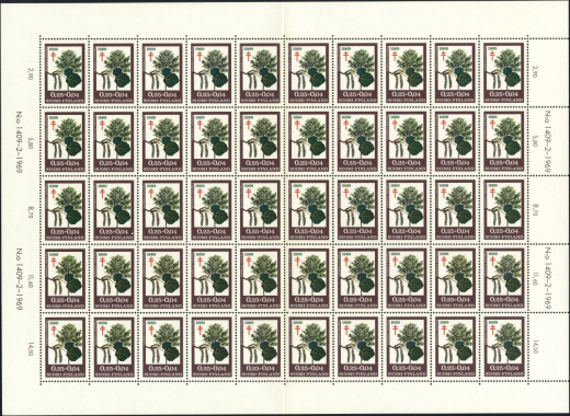 (Zuschlag) | | Ersttag: | 12.5.1969 | | Abbildung: | Espe | | Zähnung: | K14 | | Druck: | Odr. | | Farbe: | mehrfarbig | | Auflage: | 600.000 |