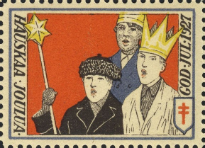 | KatNr.: | | FI-1927-1 (Green: 4) | | Abbildung: | Drei Weihnachtssänger | | Schriftzug: | "HAUSKAA JOULUA" (links), "GOD JUL 1927" (rechts) | | Zähnung: | L11/L12 | | Druck: | Odr. | | Farben: | graublau, gelb, rot, schwarz | | Auflage: | 1.400.000 (L11) |