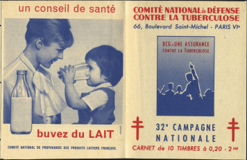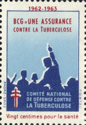 | KatNr.: | | FR-1962-1 (Green: 45) | | Abbildung: | Menschengruppe zeigt auf einen Schriftzug | | Schriftzug: | "1962-1963 / BCG = UNE ASSURANCE CONTRA LA TUBERCULOSE" (oben) "COMITÉ NATIONAL / DE DÉFENSE / CONTRA LA TUBERCULOSE / Vingt centimes pour la santé" (unten) | | Zähnung: | K13,5 | | Druck: | RaTdr. | | Farben: | blau, hellblau, rot | | Wz: | WSM - | | Auflage: | ? |