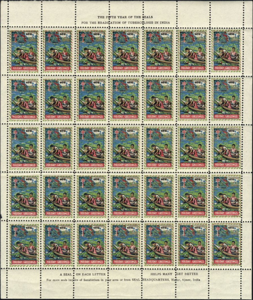 | KatNr.: | | IN-CSC-1945-1 (Green: 5) | | Abbildung: | Indisches Mädchen und ihr Bruder sammeln Lotusblumen auf einem See | | Schriftzug: | "1945-46" (oben), "HOLIDAY GREETINGS" (unten) | | Zähnung: | L11 | | Druck: | Bdr. | | Farben: | mehrfarbig |