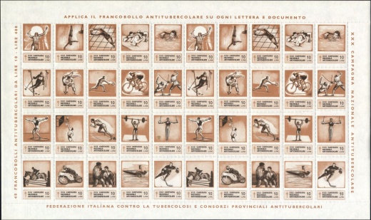 Alle Marken haben unten folgende Inschriften: "XXX CAMPAGNA NAZIONALE ANTITUBERCOLARE" und "10 LIRE"