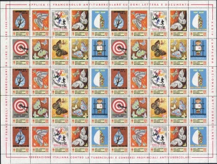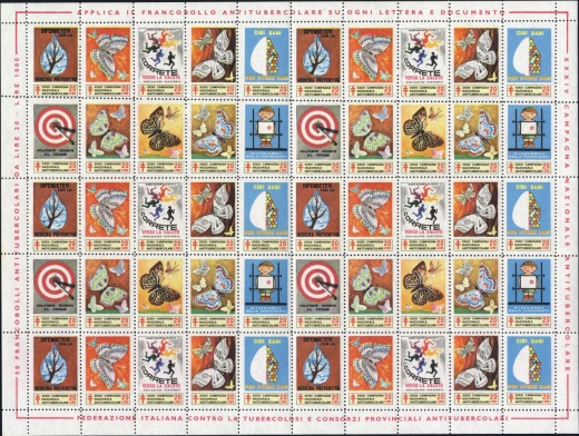 Alle Marken haben unten folgende Inschriften: "XXXIV CAMPAGNA NAZIONALE ANTITUBERCOLARE" und "20 LIRE"