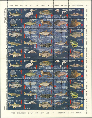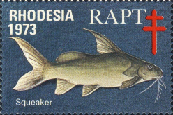 | KatNr.: | | RH-1973-1 (Green: 19.1) | | Abbildung: | Fiederbartwels | | Schriftzug: | "RHODESIA 1973 RAPT" (oben), "Squeaker" (unten) | | Zähnung: | K14¼ | | Druck: | Odr. | | Farben: | mehrfarbig | | Wz: | ? | | Auflage: | ? |