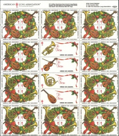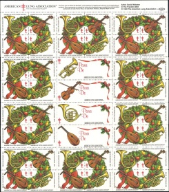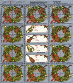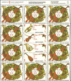 Ein Gewerkschaftslabel gibt es auf den Bögen von Speciality Printers of America (PM S) und Fleming-Potter Company (PM F) im Bogenrand über Feld 6.