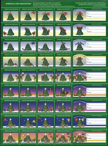 | Oben (Feld 5): | Christams Seals(R) designed by Jill Shellhorn (c) 1998 The American Lung Association(R) Fold & Tear at Perforation